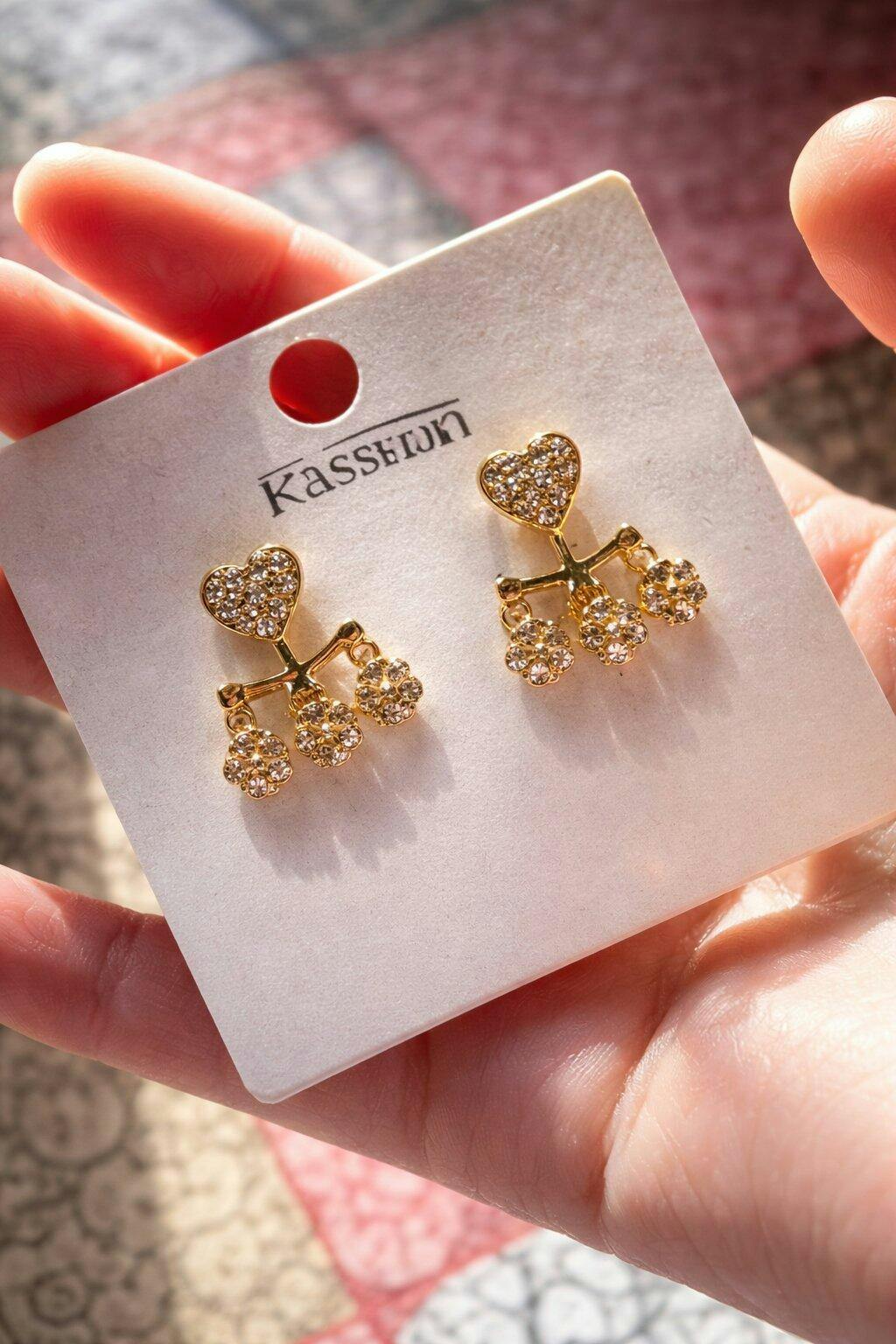 Add a touch of elegance and charm to your look with these Korean Style Gold Plated Heart Shaped Stud Drop Earrings. Designed with sparkling Cubic Zirconia (American Diamond) stones, these earrings feature a classy heart motif with delicate dangling details, making them perfect for everyday wear as well as special occasions.